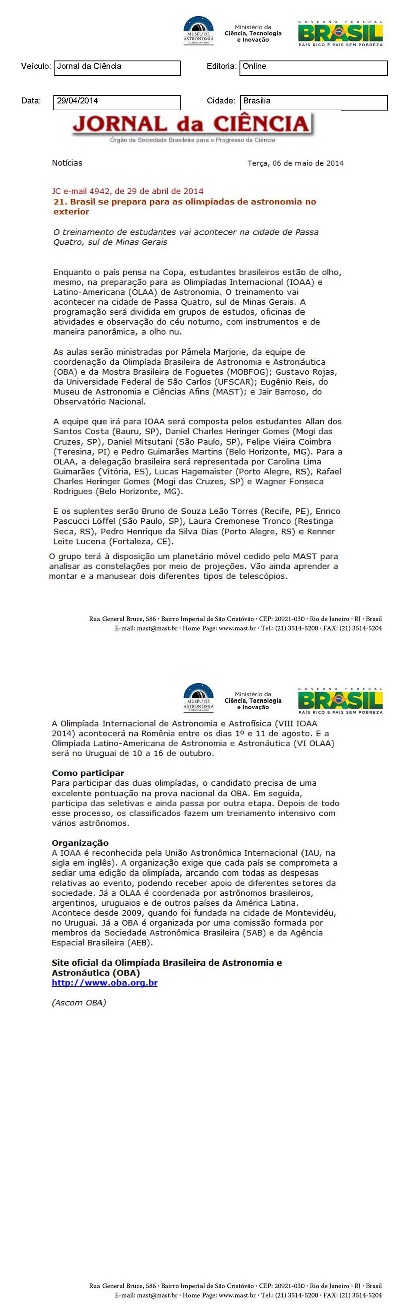 Jornal da Ciência | Brasil se prepara para as olimpíadas de astronomia no exterior