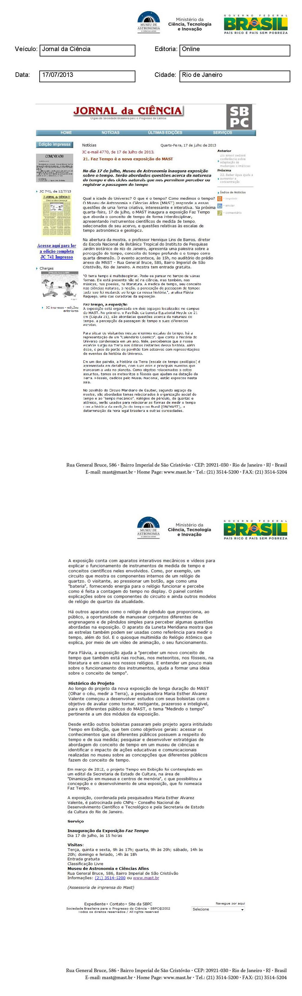 Jornal da Ciência | Faz Tempo é a nova exposição do MAST