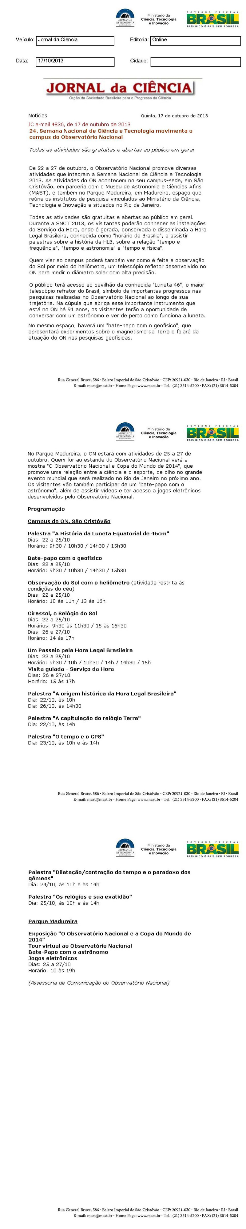 Jornal da Ciência | Semana Nacional de Ciência e tecnologia movimenta o campus do Observatório Nacional