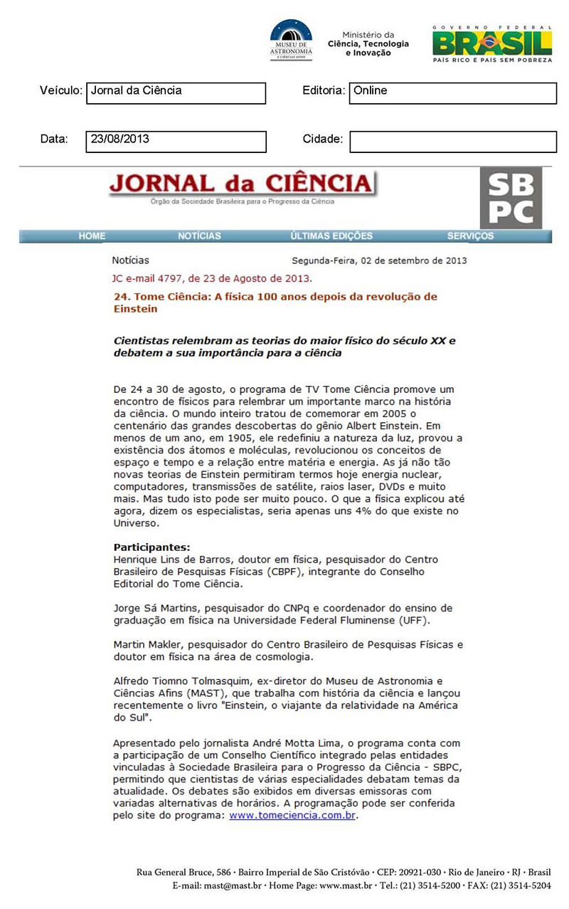 Jornal da Ciência | Tome Ciência: A física 100 anos depois da revolução de Einstein