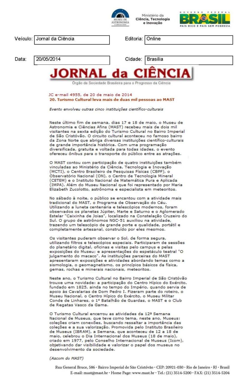 Jornal da Ciência | Turismo Cultural leva mais de 2 mil pessoas ao MAST