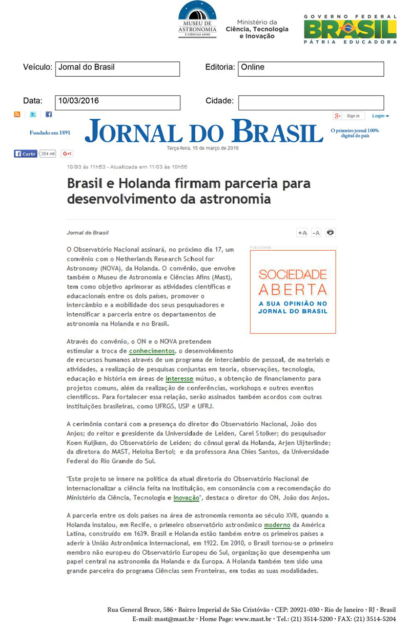 Jornal do Brasil | Brasil e Holanda firmam parceria para desenvolvimento da astronomia