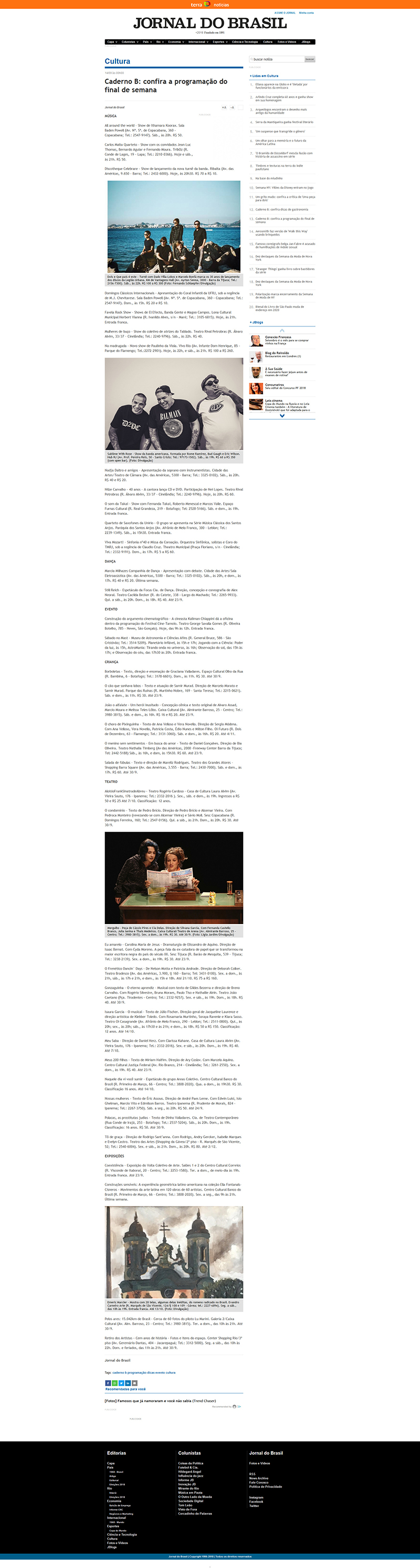 Jornal do Brasil | Caderno B: confira a programação do final de semana
