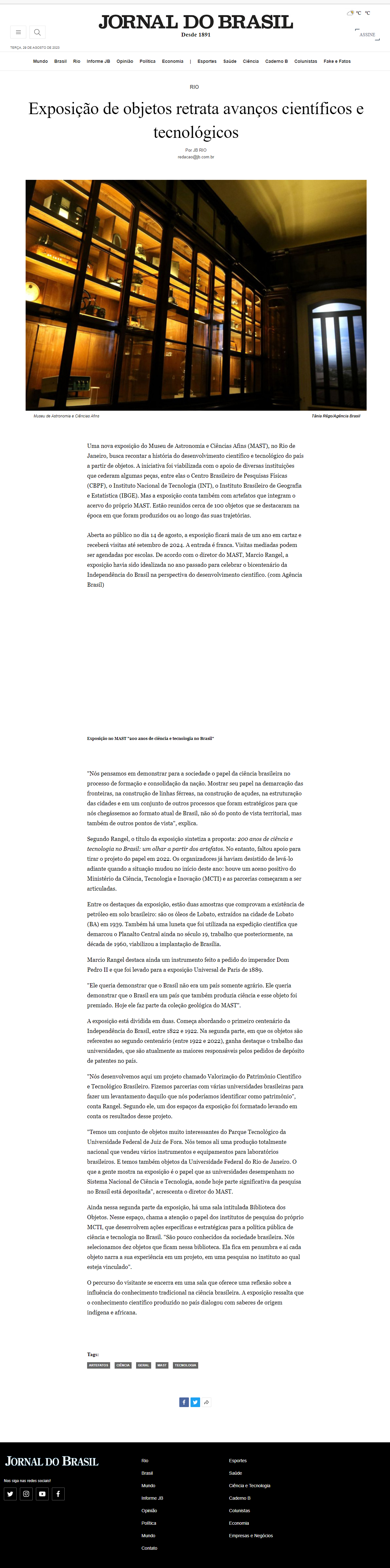 Jornal do Brasil - Exposição de objetos retrata avanços científicos e tecnológicos