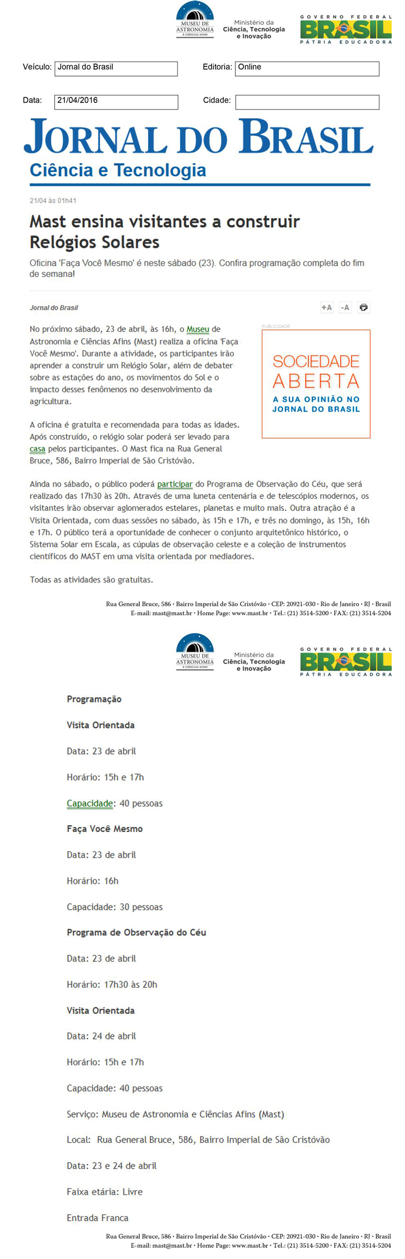 Jornal do Brasil | MAST ensina visitantes a construir Relógios Solares