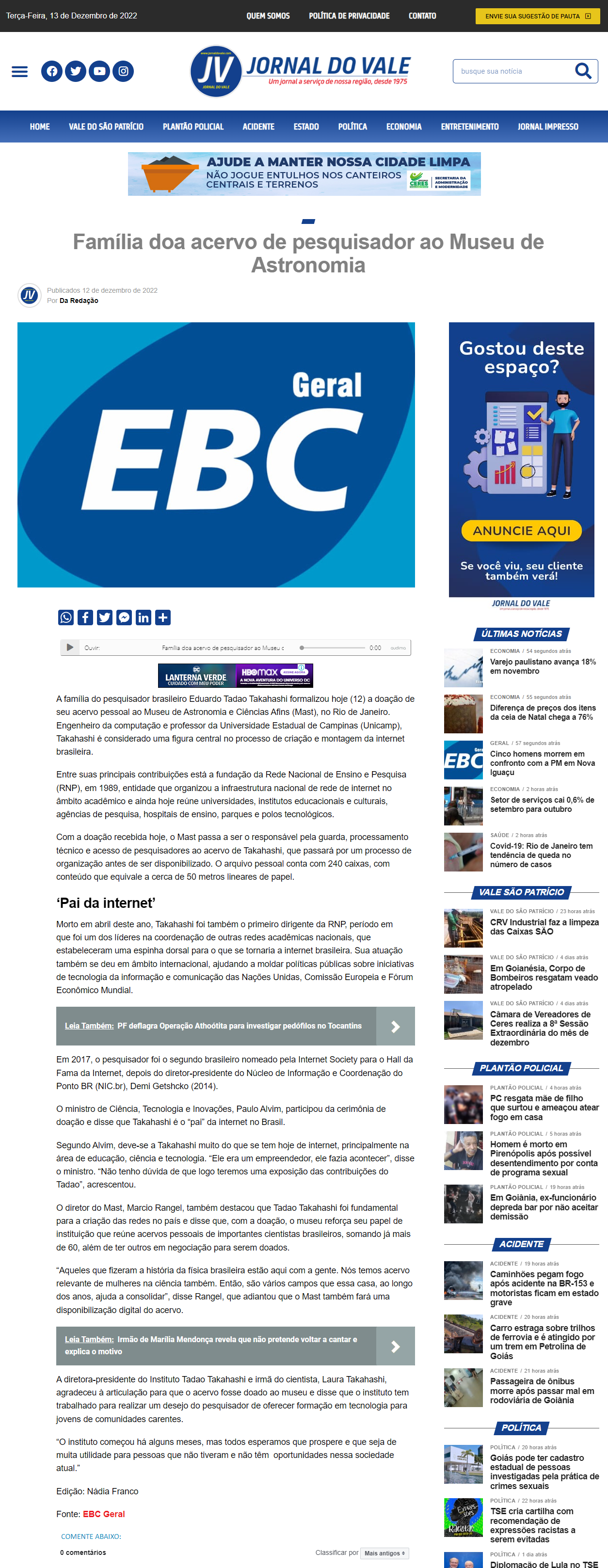 Jornal do Vale - Família doa acervo de pesquisador ao Museu de Astronomia