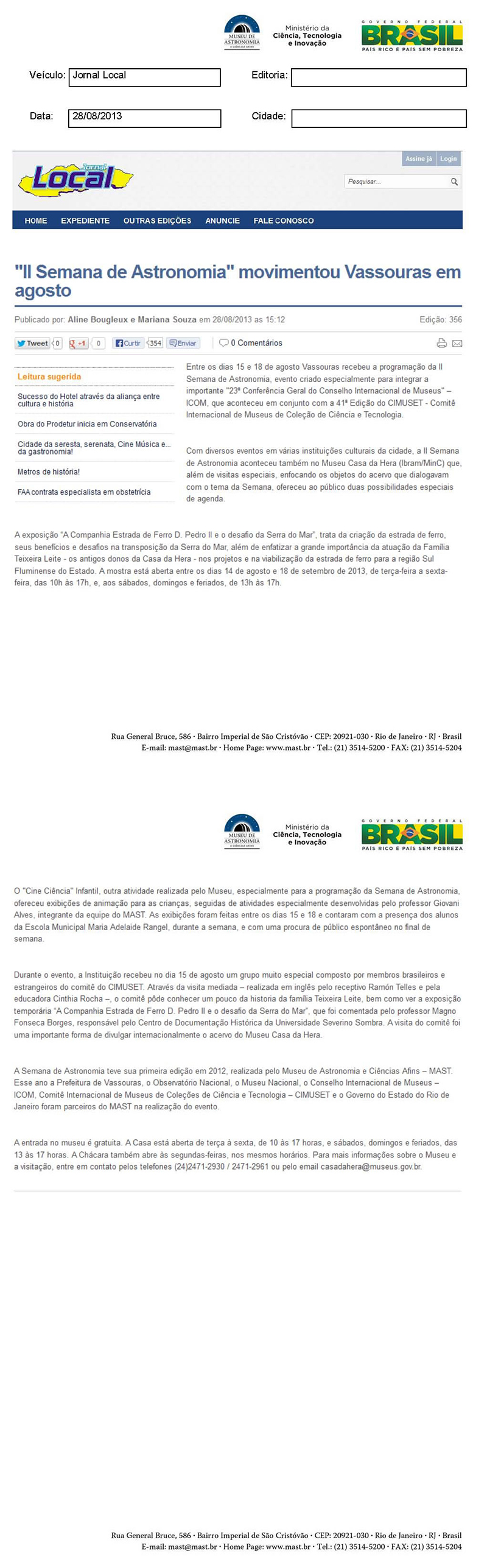 Jornal Local | "II Semana de Astronomia" movimentou Vassouras em agosto