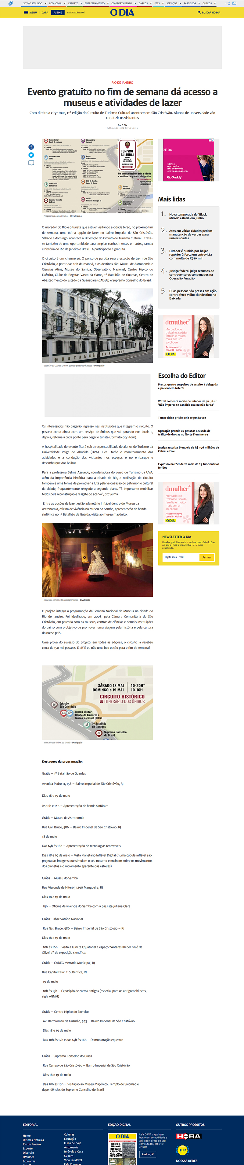 Jornal O Dia online | 11ª Turismo Cultural de São Cristóvão