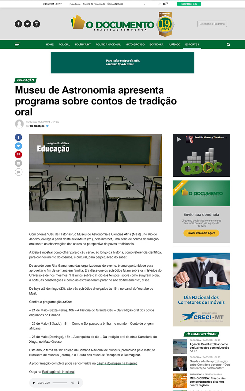 Jornal O Documento (Cuiabá-MT) | MAST para toda a família na 19ª Semana Nacional de Museus