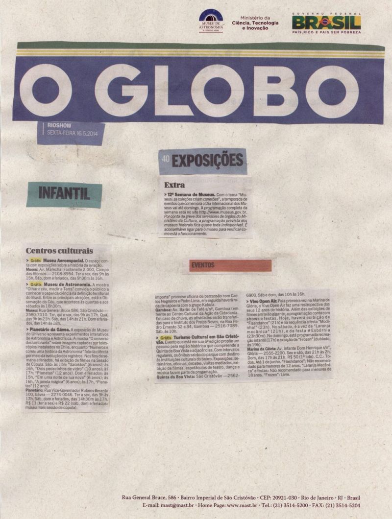 Jornal O Globo | 12ª Semana de Museus