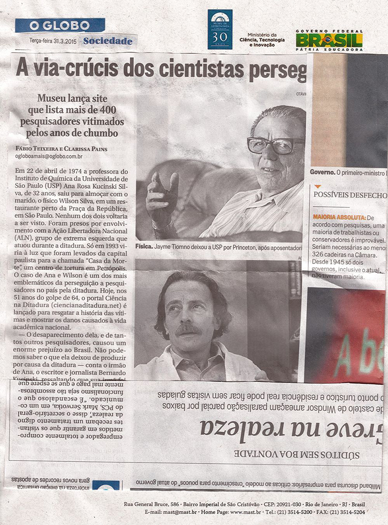 Jornal O Globo | A via-crúcis dos cientistas perseguidos