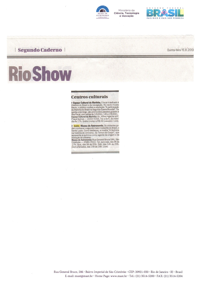 Jornal O Globo - Rio Show | Centros culturais