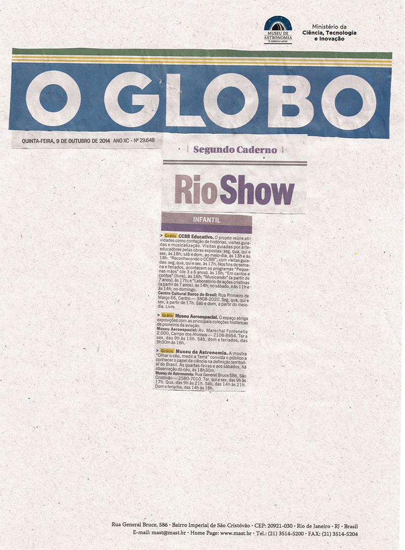 Jornal O Globo - Rio Show | Museu de Astronomia
