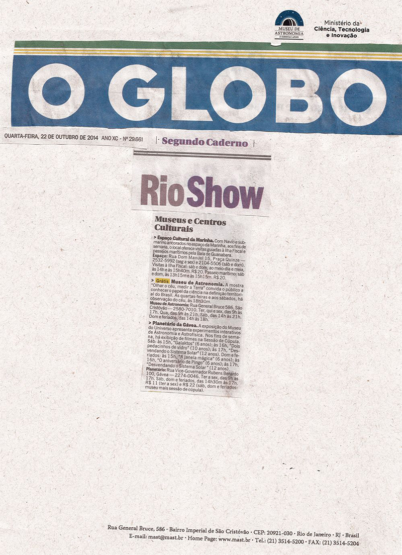 Jornal O Globo - Rio Show | Museus e centros culturais
