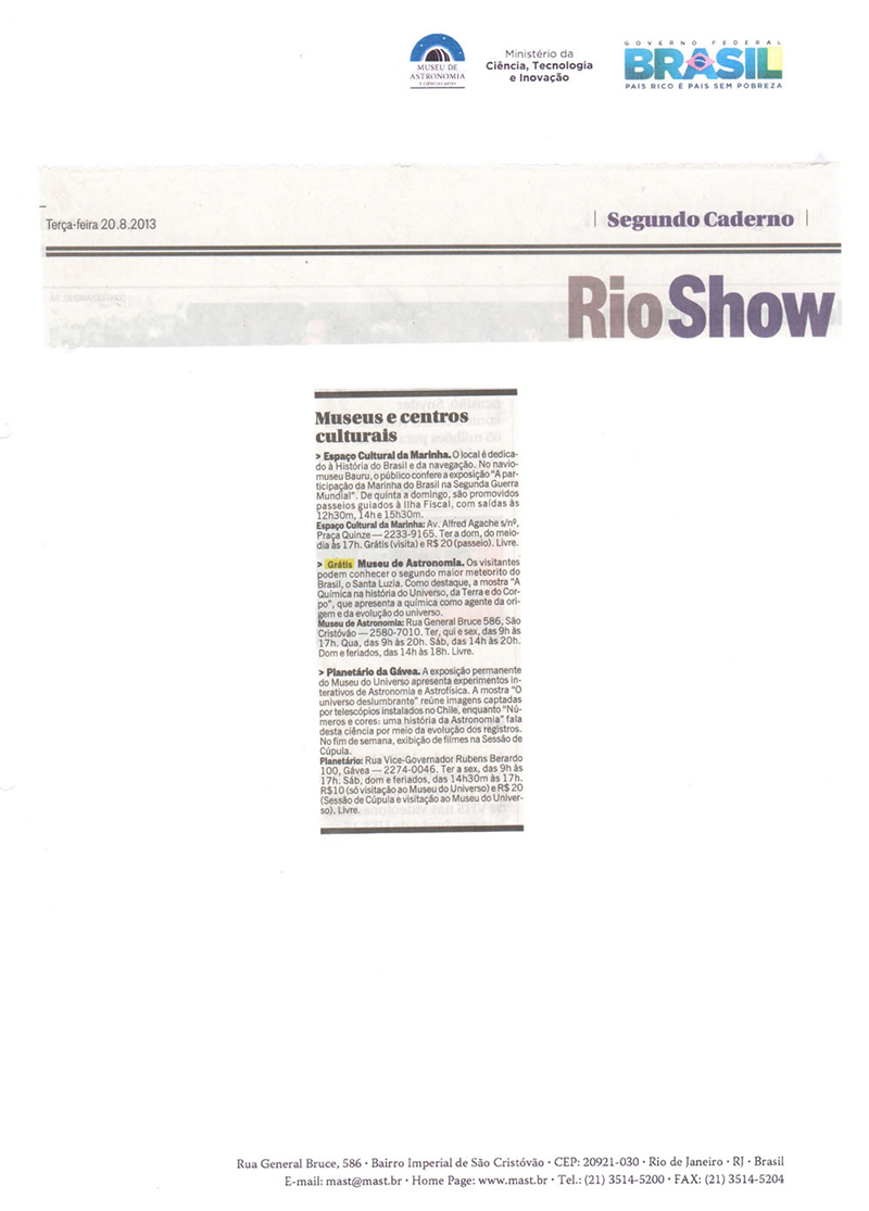 Jornal O Globo - Rio Show | Museus e centros culturais