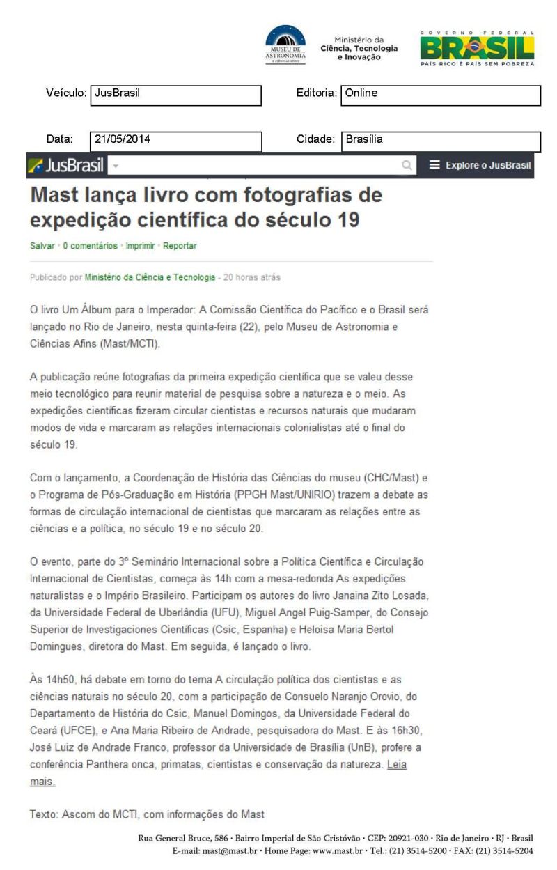 Jus Brasil | MAST lança livro com fotografias de expedição científica do século 19