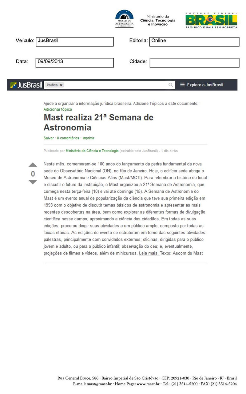 Jus Brasil | MAST realiza 21ª Semana de Astronomia