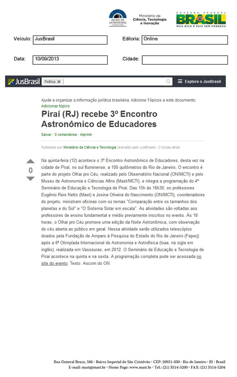 Jus Brasil | Piraí (RJ) recebe 3º Encontro Astronômico de Educadores