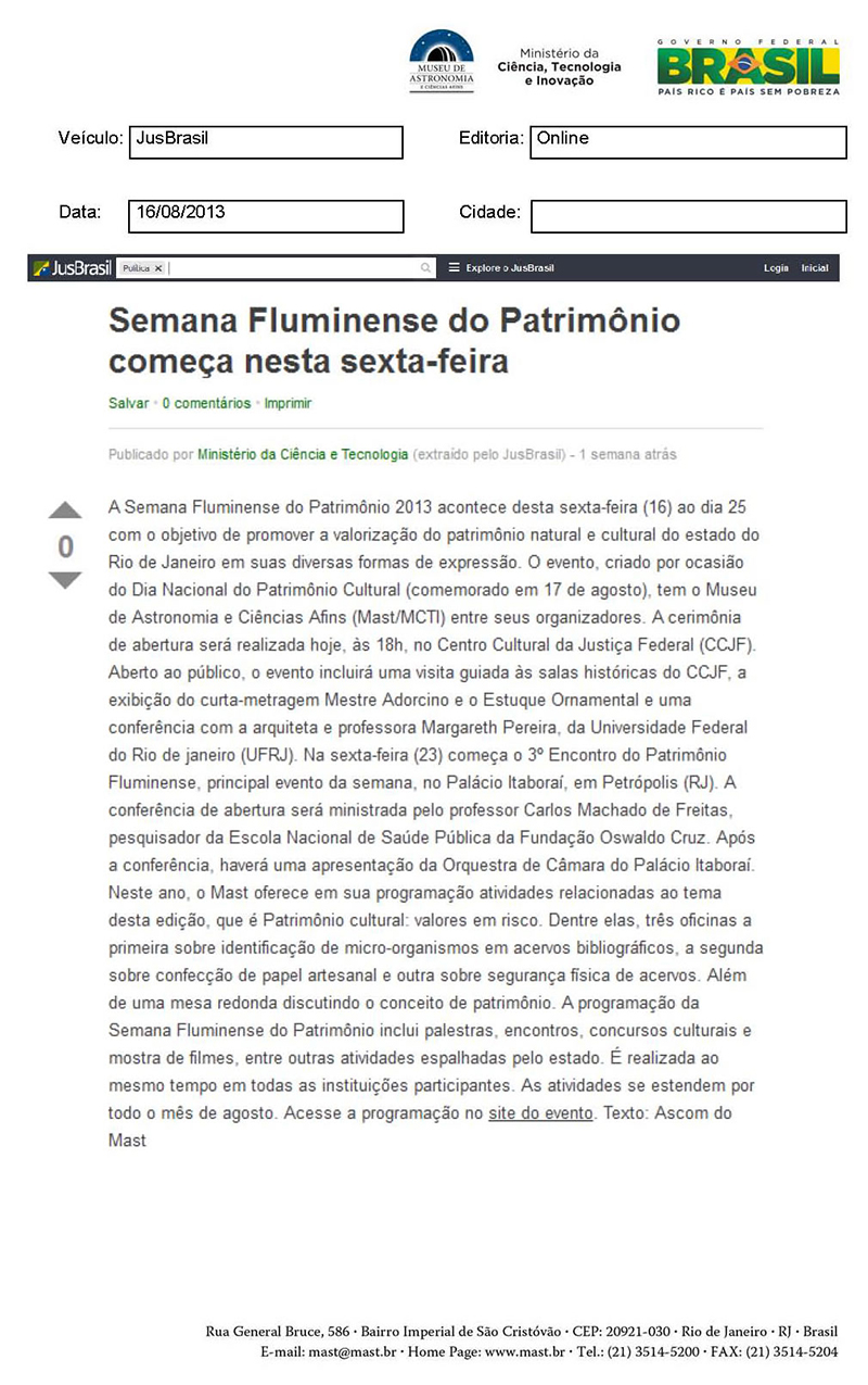 Jus Brasil | Semana Fluminense do Patrimônio começa nesta sexta-feira