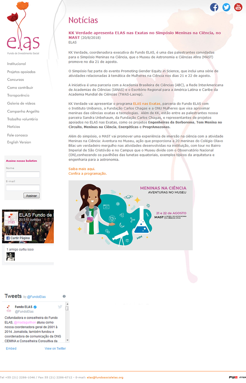 Site Elas | KK Verdade apresenta ELAS nas Exatas no Simpósio Meninas na Ciência, no MAST