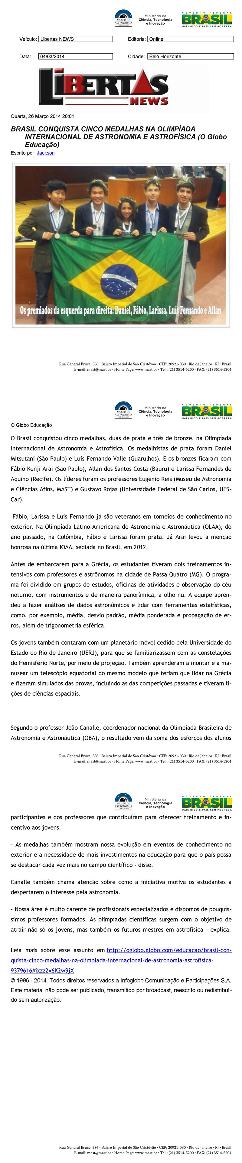 Libertas New | Brasil conquista cinco medalhas na Olimpíada Internacional de Astronomia e Astrofísica