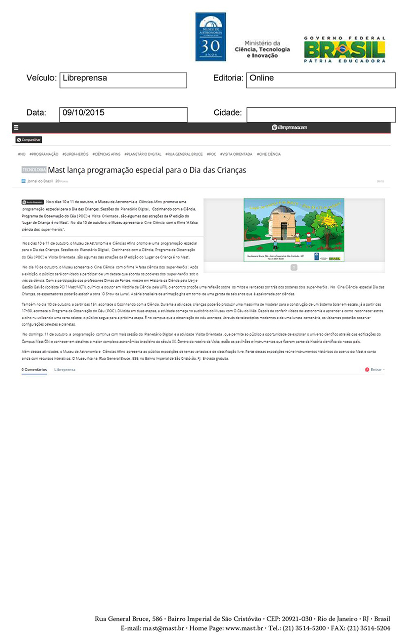Libreprensa | MAST lança programação especial para o Dia das Crianças