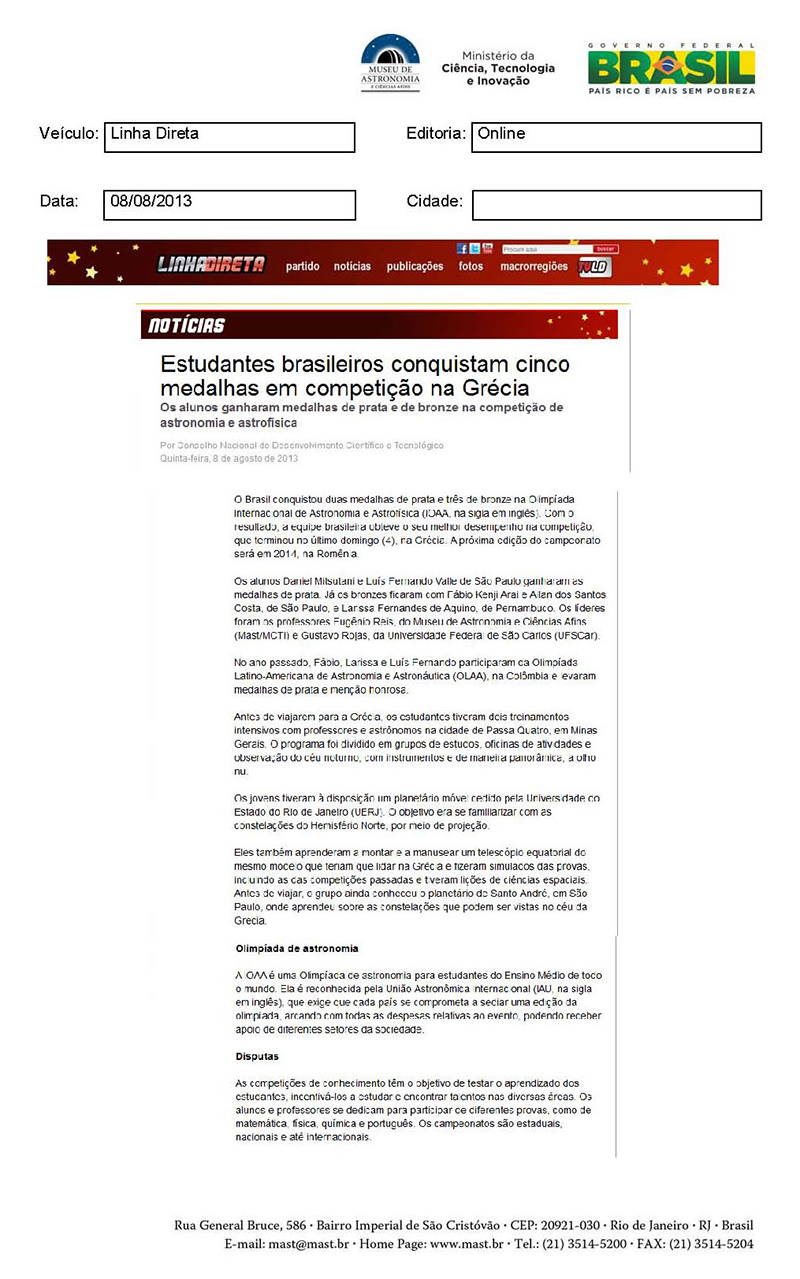 Linha Direta | Estudantes brasileiros conquistam cinco medalhas em competição na Grécia