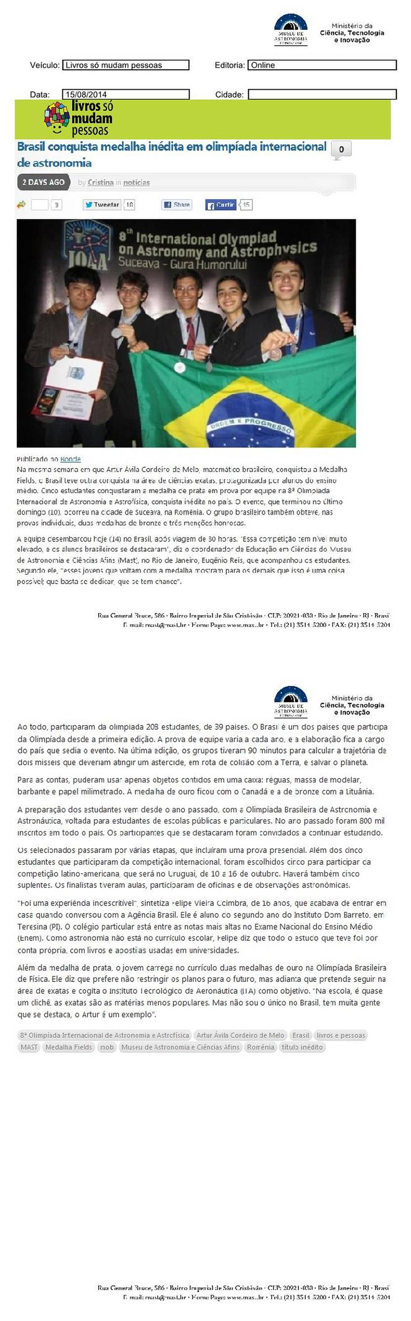 Livros só mudam pessoas | Brasil conquista medalha inédita em olimpíada internacional de astronomia