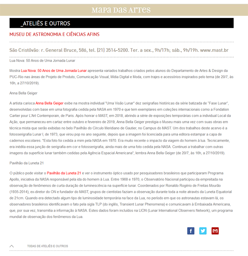 Mapa das Artes | Exposições Anna Bella Geiger / Uma Visão Lunar e Design PUC / Lua Nova