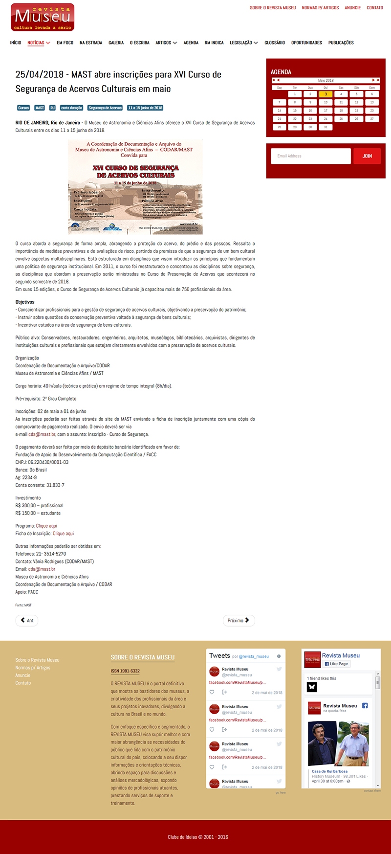 Revista Museu | MAST abre inscrições para XVI Curso de Segurança de Acervos Culturais em maio