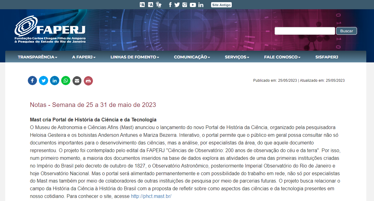 Portal FAPERJ - MAST cria Portal de História da Ciência e da Tecnologia