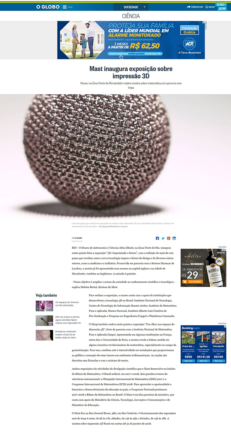 O Globo | MAST inaugura exposição sobre impressão 3D