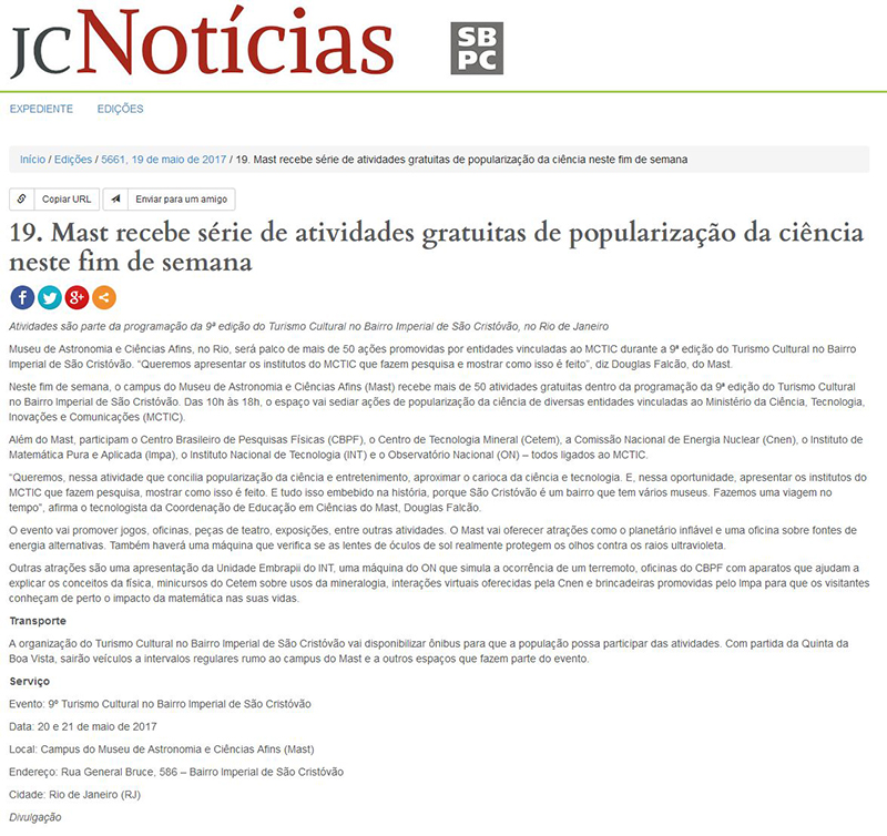 JC Notícias | Mast recebe série de atividades gratuitas de popularização da ciência neste fim de semana