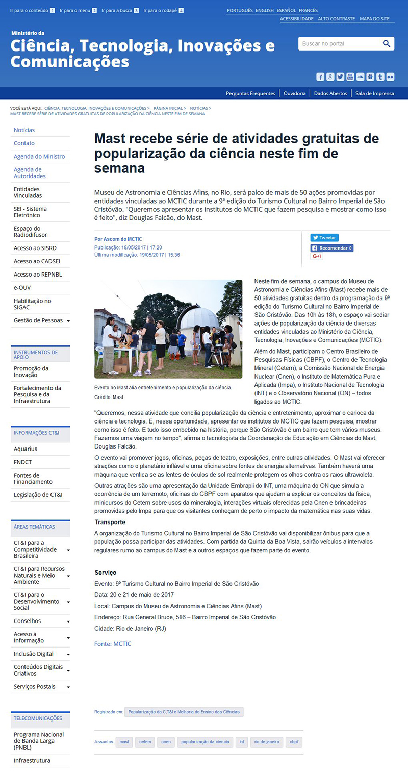 MCTIC | MAST recebe série de atividades gratuitas de popularização da ciência neste fim de semana