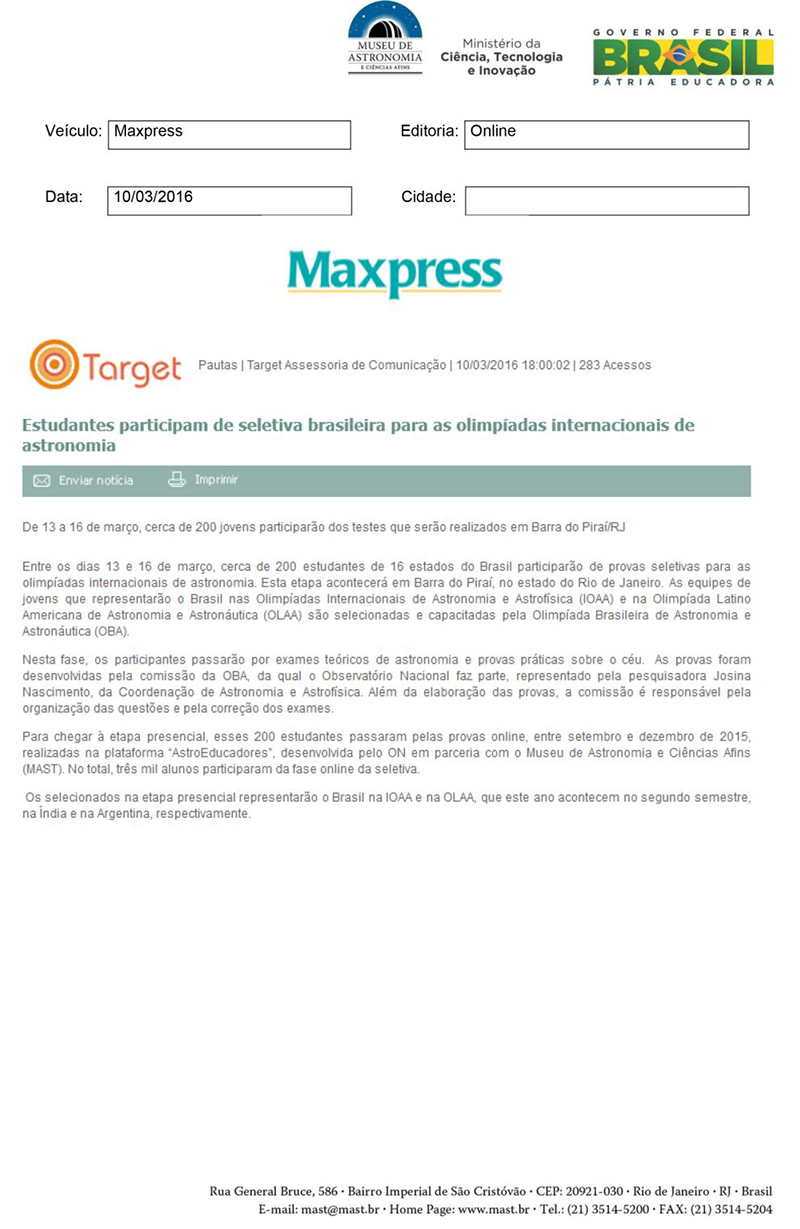 Maxpress | Estudantes participam de seletiva para as olimpíadas internacionais de astronomia