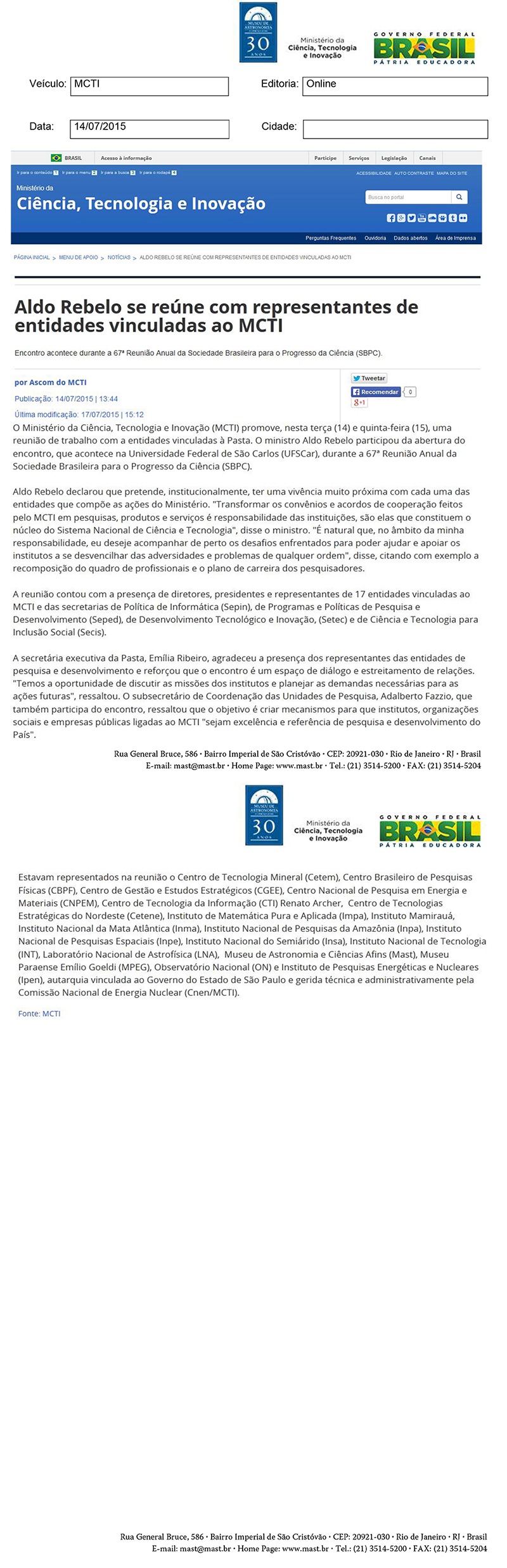 Museu de Astronomia e Ciências Afins - MAST