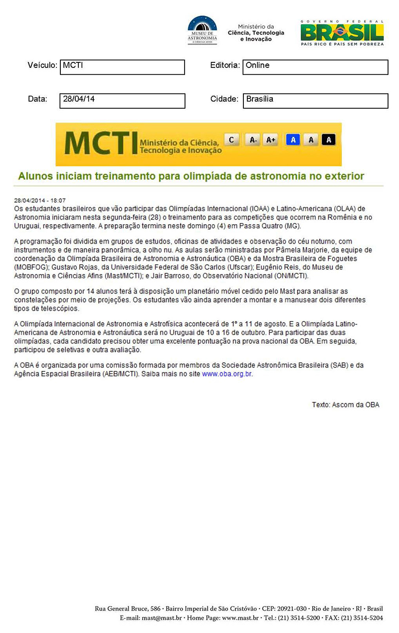 MCTI | Alunos iniciam treinamento para olimpíada de astronomia no exterior