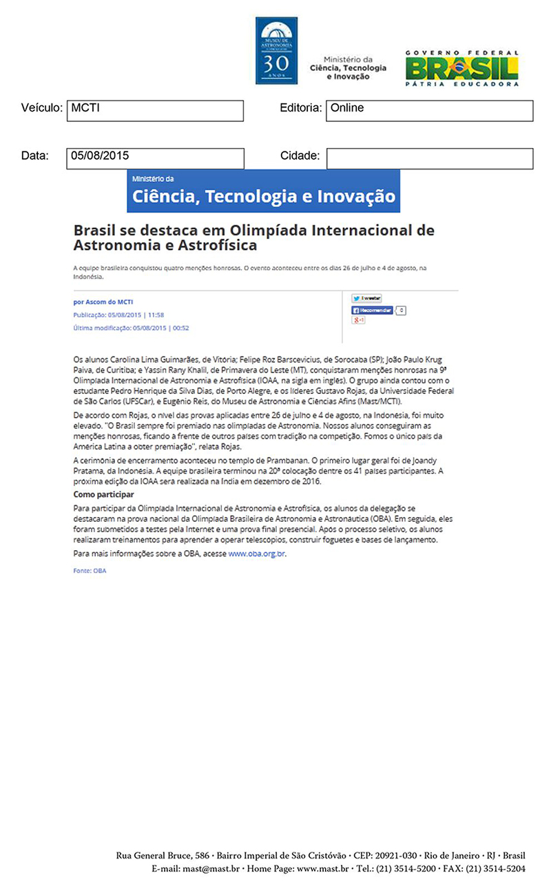 MCTI | Brasil se destaca em Olimpíada Internacional de Astronomia e Astrofísica