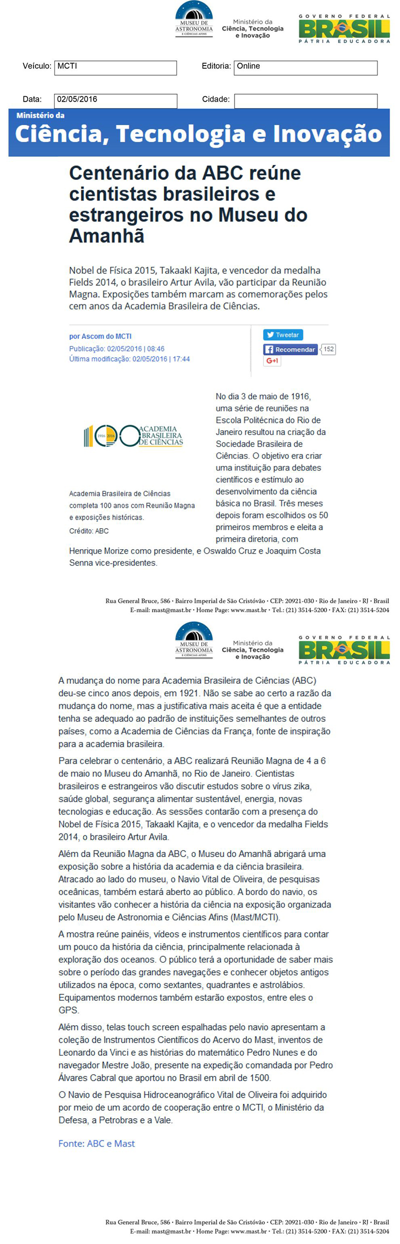 Museu de Astronomia e Ciências Afins - MAST