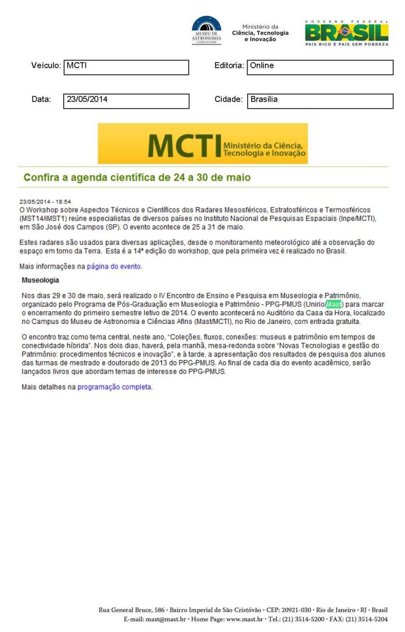 MCTI | Confira a agenda científica de 24 a 30 de maio