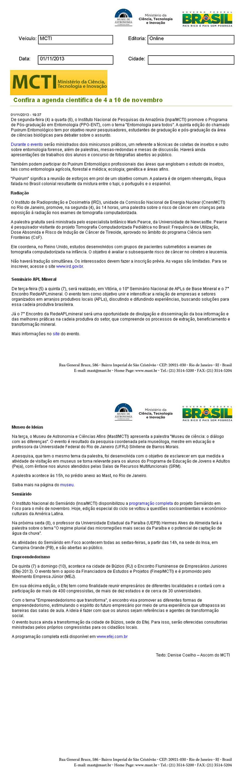 MCTI | Confira a agenda científica de 4 a 10 de novembro