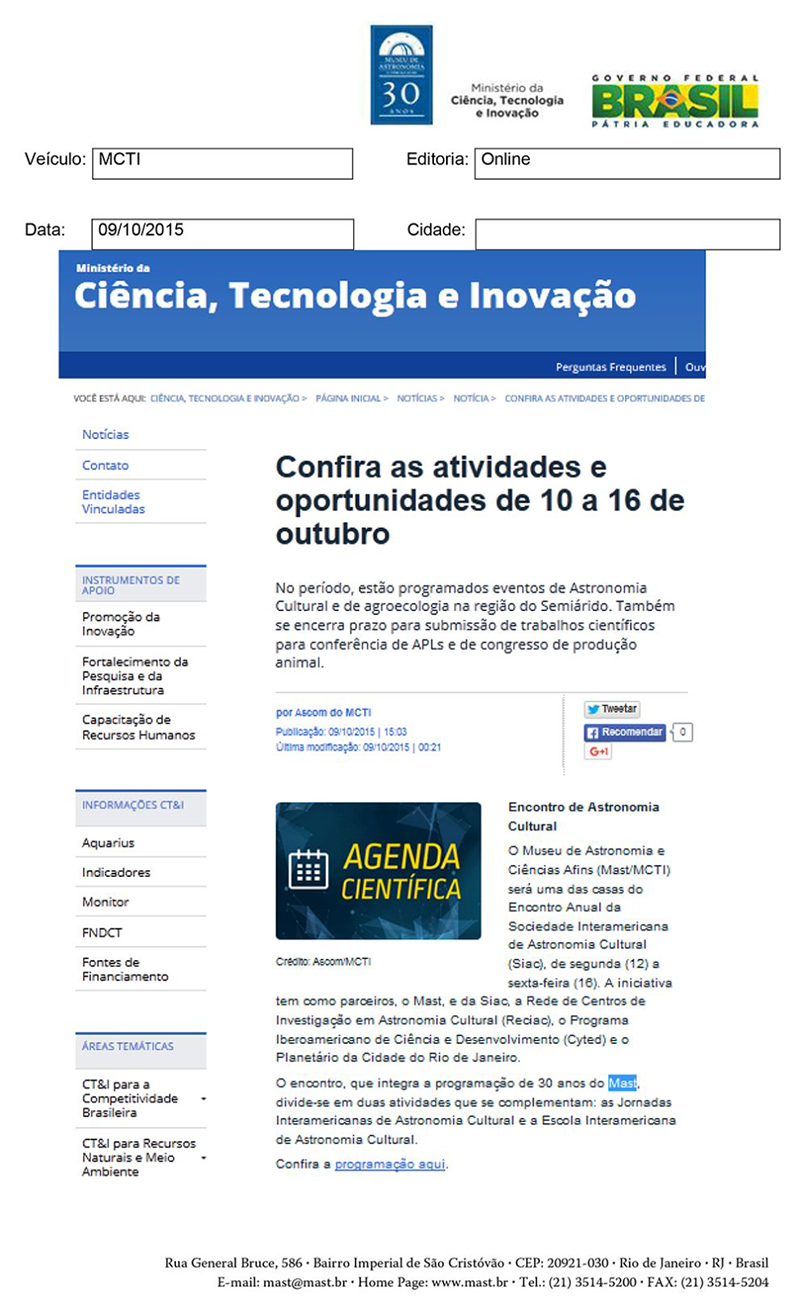MCTI | Confira as atividades e oportunidades de 10 a 16 de outubro