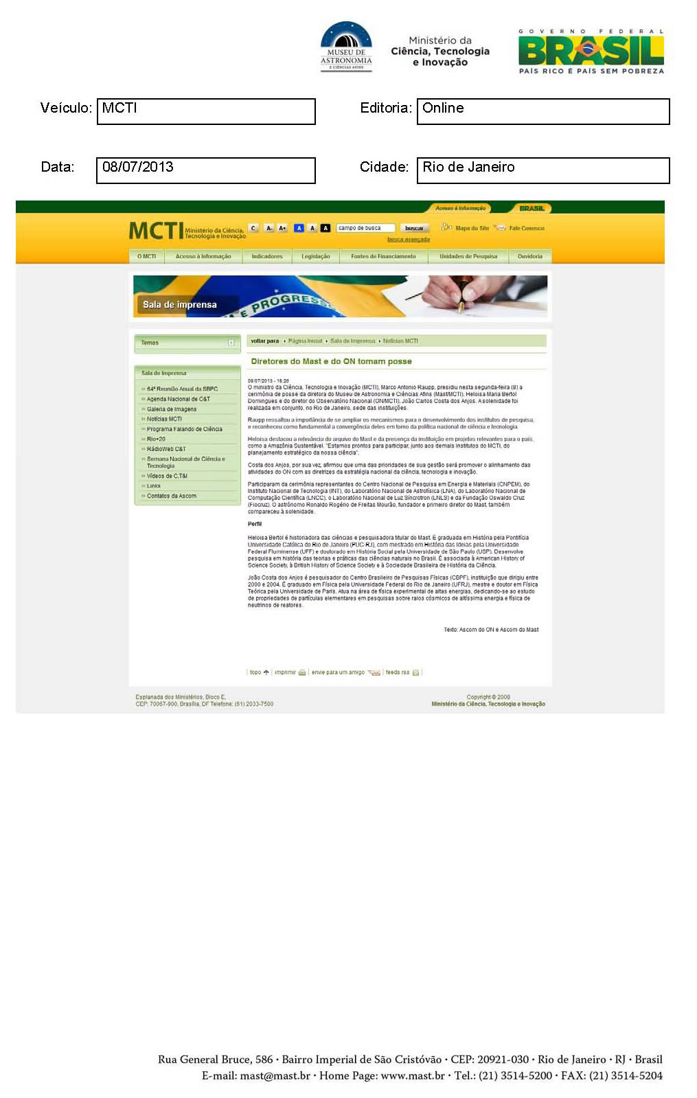 MCTI | Diretores do MAST e do ON tomam posse