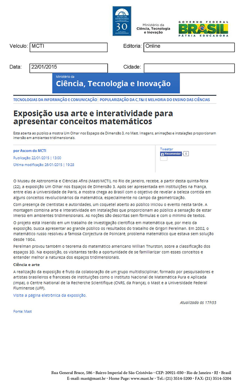 MCTI | Exposição usa arte e interatividade para apresentar conceitos matemáticos