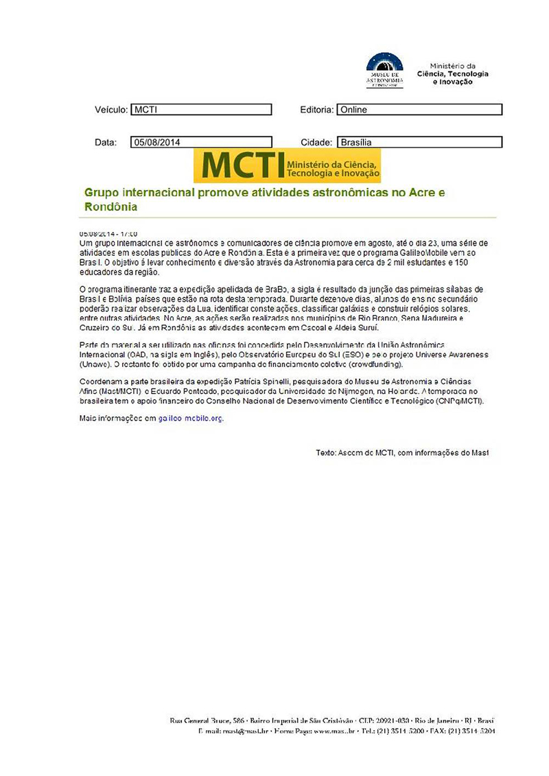MCTI | Grupo internacional promove atividades astronômicas no Acre e Rondônia