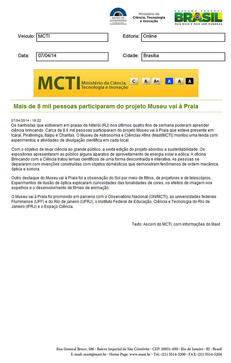 MCTI | Mais de 8 mil pessoas participaram do projeto Museu Vai à Praia