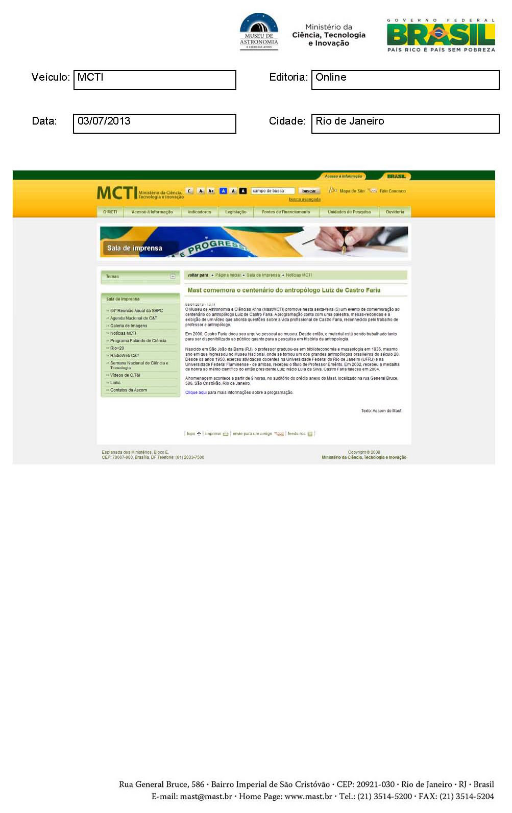 MCTI | MAST comemora o centenário do antropólogo Luiz de Castro Faria