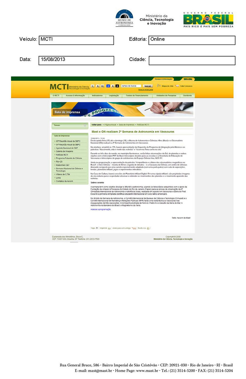 MCTI | MAST e ON realizam 2ª Semana de Astronomia em Vassouras