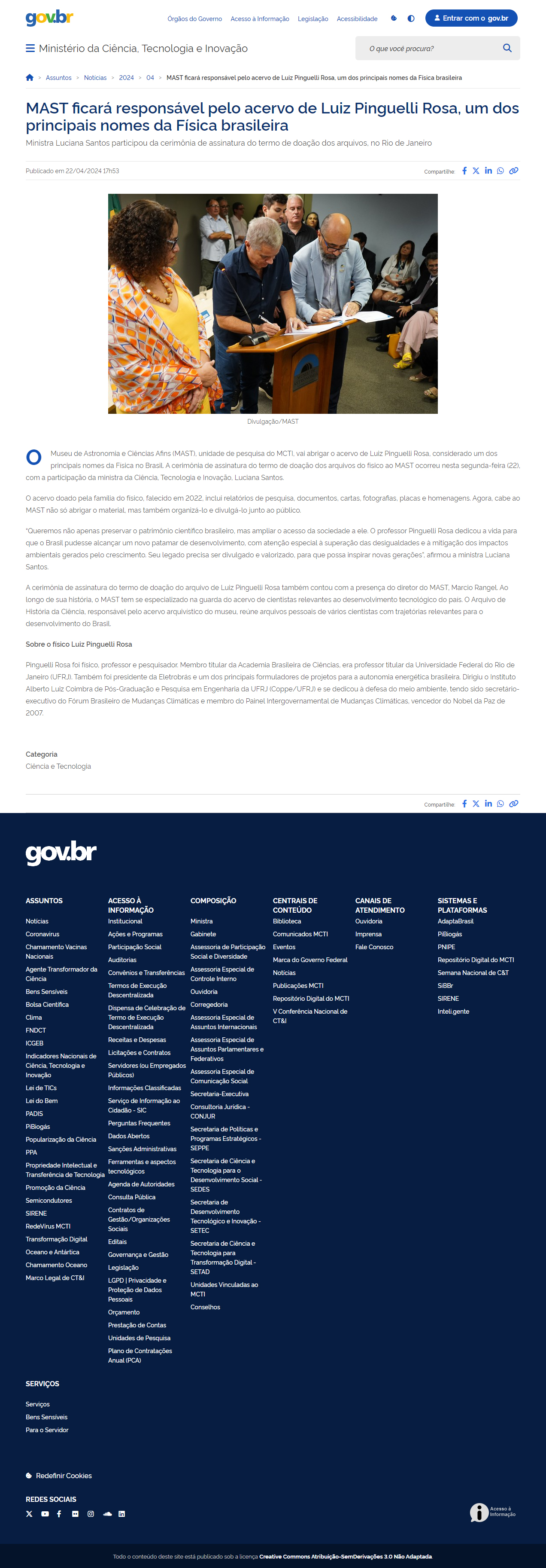 MCTI - MAST ficará responsável pelo acervo de Luiz Pinguelli Rosa, um dos principais nomes da Física brasileira