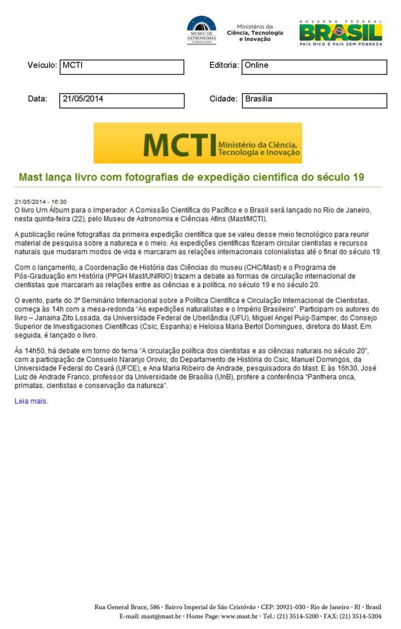 MCTI | MAST lança livro com fotografias de expedição científica do século 19
